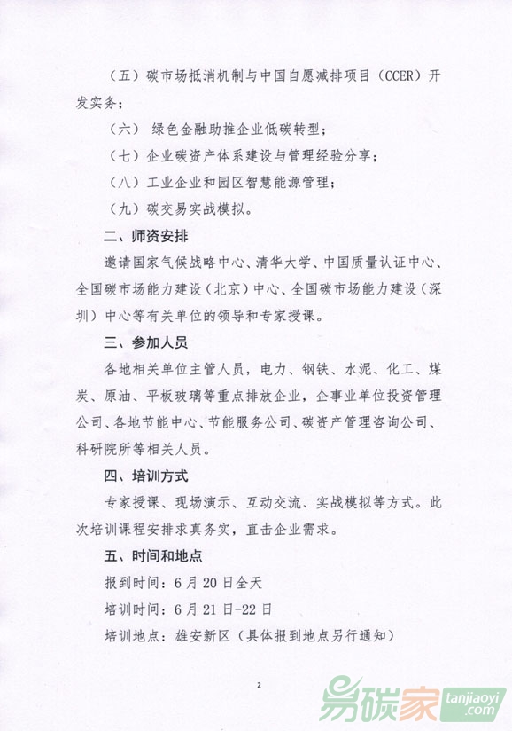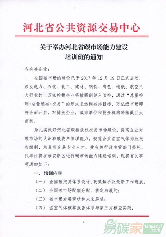 關(guān)于舉辦河北省碳市場能力建設(shè)培訓(xùn)班的通知