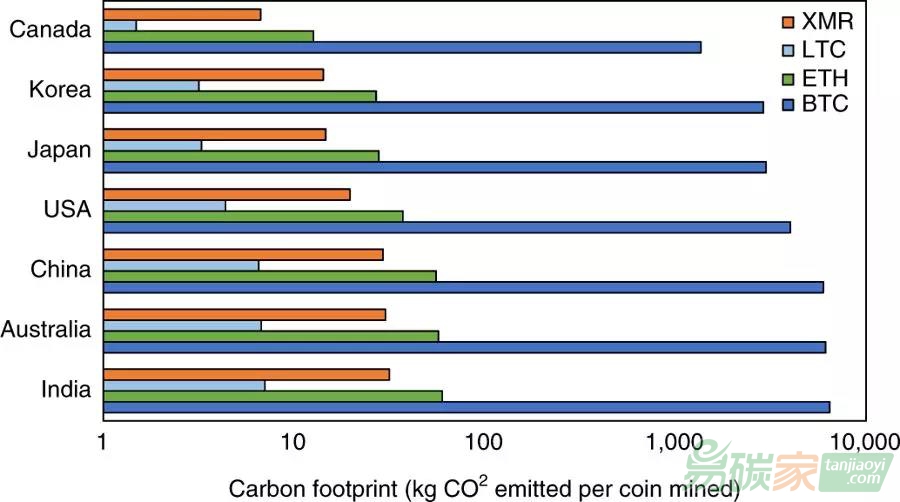 碳排放量在300萬-1500萬噸之間。比如,由于發(fā)電上的差異,在中國每個貨幣挖礦所產(chǎn)生的二氧化碳排放量是加拿大的4倍之多。?