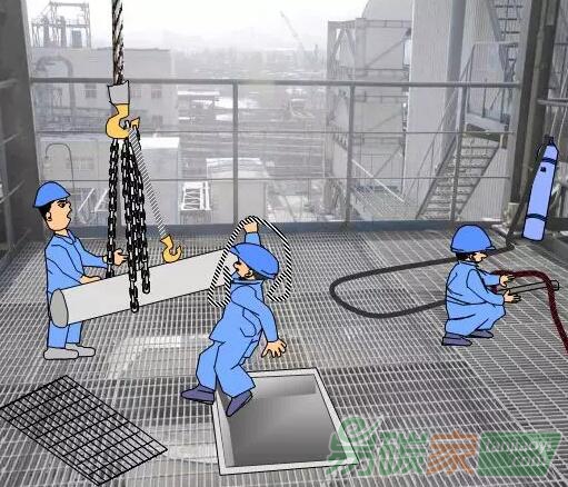 某年3月16日下午,某廠在除塵器6m倉泵平臺進行設(shè)備安裝,切割一孔洞(2×3m),未加裝臨時圍欄。作業(yè)中,在將設(shè)備向已開好的6m平臺孔洞移動時,設(shè)備的一角觸到鋼結(jié)構(gòu)支柱,無法繼續(xù)下放。作業(yè)人員加設(shè)手動葫蘆以調(diào)整設(shè)備的位置,李某在用鋼絲繩進行綁縛時,鋼絲繩突然彈開,退后躲閃時一腳踩空,從平臺孔洞墜落,造成左鎖骨骨裂。