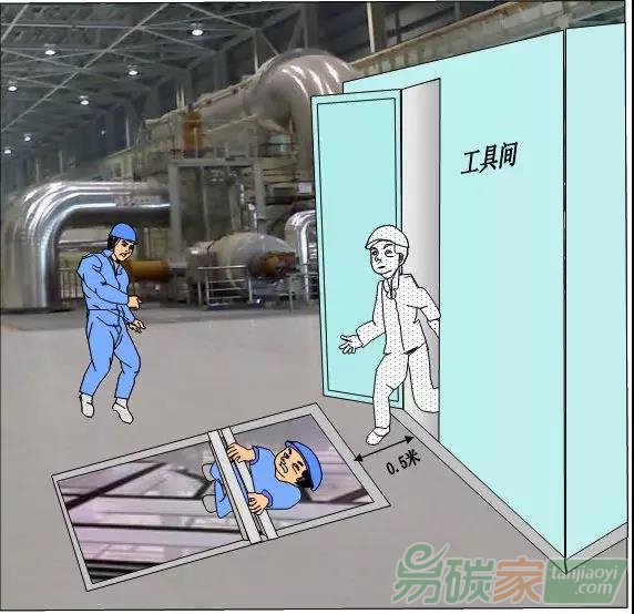 在某年12月26日上午,某廠檢修人員將發(fā)電機平臺附近的起吊孔(12.6米)打開后未設(shè)置臨時圍欄,設(shè)一人看護。距起吊孔約0.5米處臨時放置一臨時鐵棚工作間,從鐵棚內(nèi)出來一位工作人員,踏入起吊孔,手臂抓住起吊孔中間的工字鋼梁上,懸在空中,撿回一條命。
