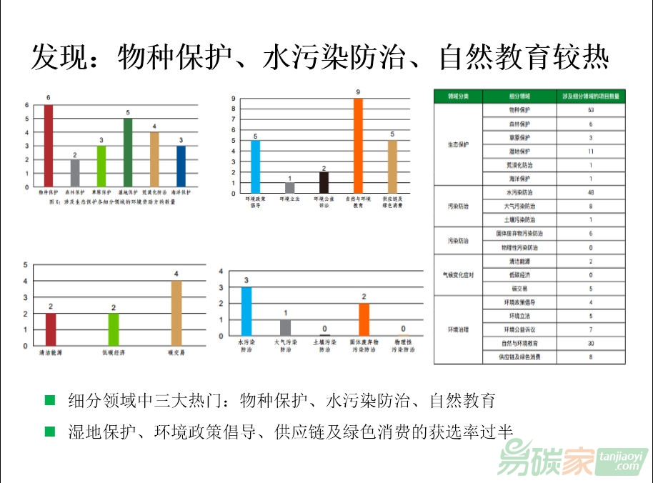 吉林的項目為零。項目資助最為集中的華東地區(qū)及廣東省來看,仍以占比重最高的生態(tài)保護和污染防治為主。 在年會閉幕式上,