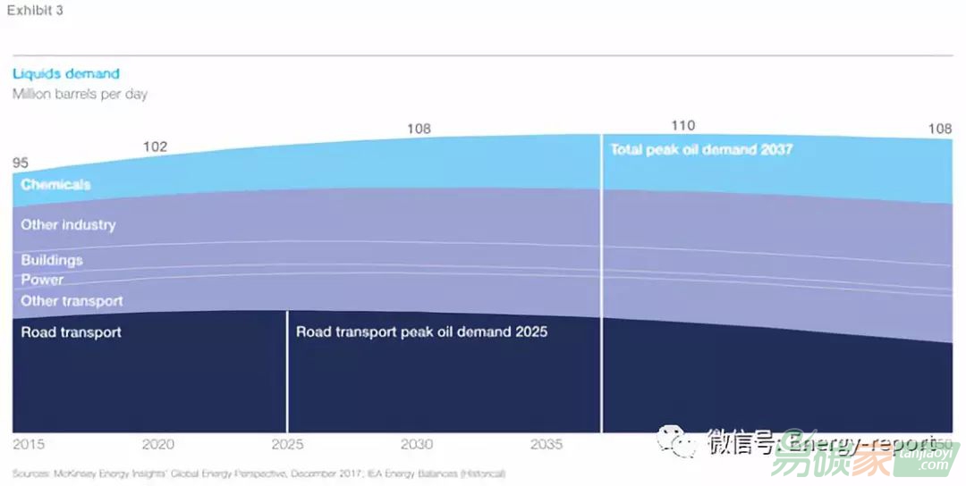 為什么你預(yù)計(jì)石油需求會(huì)達(dá)到峰值,正如你預(yù)計(jì)人口和人均GDP會(huì)增長(zhǎng)?我們預(yù)計(jì)石油需求將在2037年達(dá)到峰值,約為每天1.1億桶。拐點(diǎn)背后的關(guān)鍵驅(qū)動(dòng)因素與道路