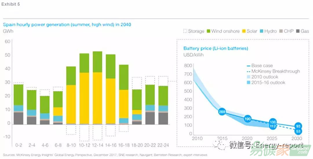 其次,一些化石燃料的產(chǎn)能——尤其是靈活的天然氣產(chǎn)能——將保持在線以提供穩(wěn)定性。隨著可再生能源的使用和存儲(chǔ)成本競(jìng)爭(zhēng)的加快(見下圖),這種產(chǎn)能的利用率將不可避免地下降。在一段時(shí)間內(nèi),覆蓋更昂貴的峰值容量仍將提供足夠的收入,以保持在線容量。從某種意義上說,為了保持穩(wěn)定,產(chǎn)能市場(chǎng)(在它們還不存在的地方)可能會(huì)變得必要。此外,我們預(yù)計(jì)網(wǎng)格互連將會(huì)增加,這將進(jìn)一步支持間歇性負(fù)載的平衡。在今后的道路上,替代的靈活性工具,如儲(chǔ)氫這個(gè)特別重要的季節(jié)性儲(chǔ)存,可以發(fā)揮越來(lái)越大的作用。然而,這些發(fā)展的規(guī)模和速度仍然不確定,因?yàn)榧夹g(shù)需要進(jìn)一步發(fā)展,有關(guān)費(fèi)用需要減少,以便使這些解決辦法具有經(jīng)濟(jì)效益。