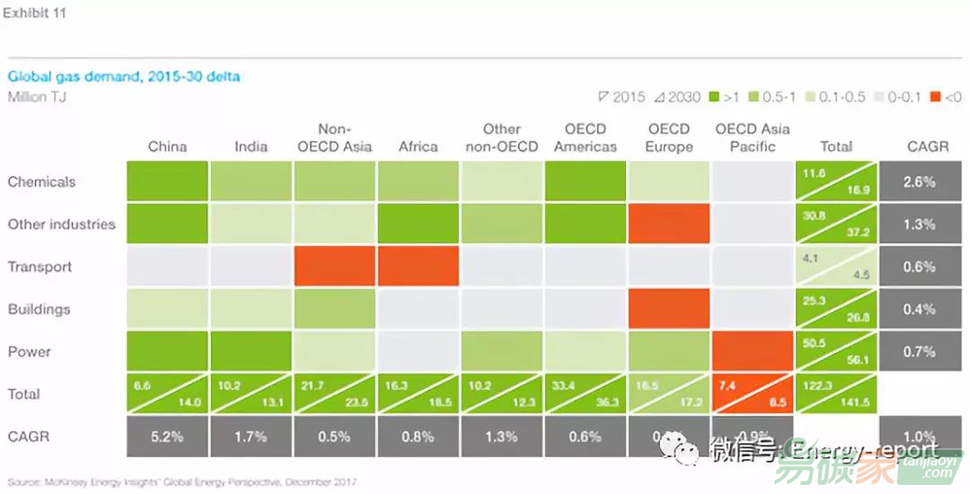 化工行業(yè)的化石燃料需求相對(duì)于其他行業(yè)增長(zhǎng)如此之快?到2030年,化工行業(yè)的化石燃料消耗將推動(dòng)石油需求增長(zhǎng)近一半,天然氣需求增長(zhǎng)逾四分之一。原因在于,它與全球GDP增長(zhǎng)高度相關(guān),而且以石油化工為基礎(chǔ)的原料的具有成本競(jìng)爭(zhēng)力的替代品數(shù)量有限?;ば袠I(yè)將是未來(lái)幾十年油氣需求增長(zhǎng)的關(guān)鍵驅(qū)動(dòng)力。盡管它在2015年僅占石油和天然氣消費(fèi)的13%和9%,但到2030年,它將分別為這兩種燃料的需求增長(zhǎng)貢獻(xiàn)46%和28%。我們預(yù)計(jì),盡管全球石油需求將在2037年達(dá)到峰值,化工行業(yè)將在2030- 2050年間保持這一趨勢(shì)。