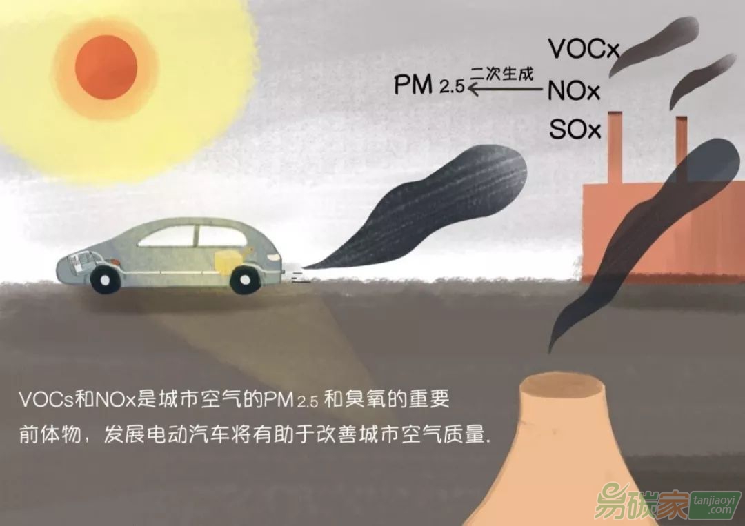 (2)大氣污染物排放電動汽車可顯著削減VOCs和NOx排放,電動汽車的一次PM2.5和SO2排放與汽油車相當或略有增加。