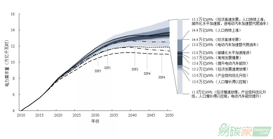 圖3 政策發(fā)展情景下中國電力需求量預(yù)測(2015~2050年)