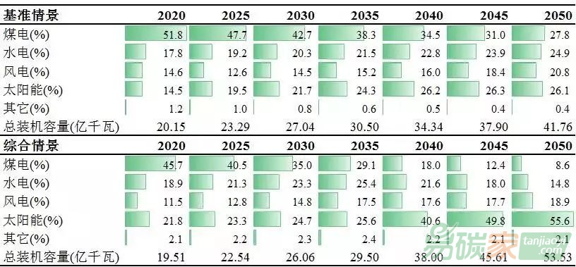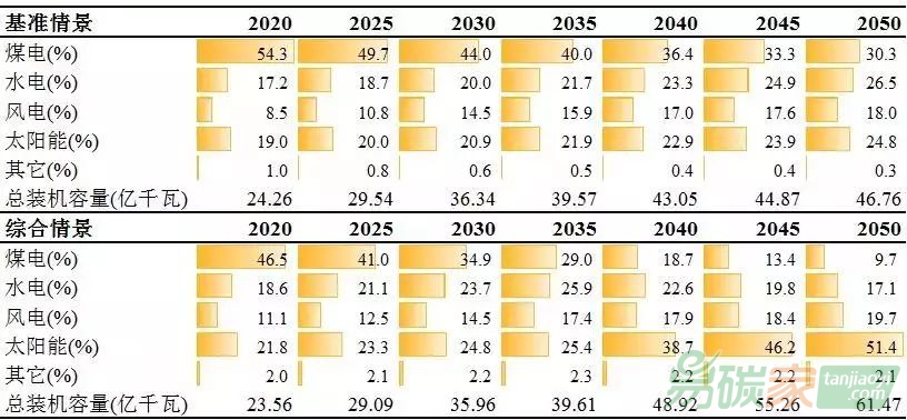 表1 中等電力需求情景下電力行業(yè)技術(shù)發(fā)展路徑