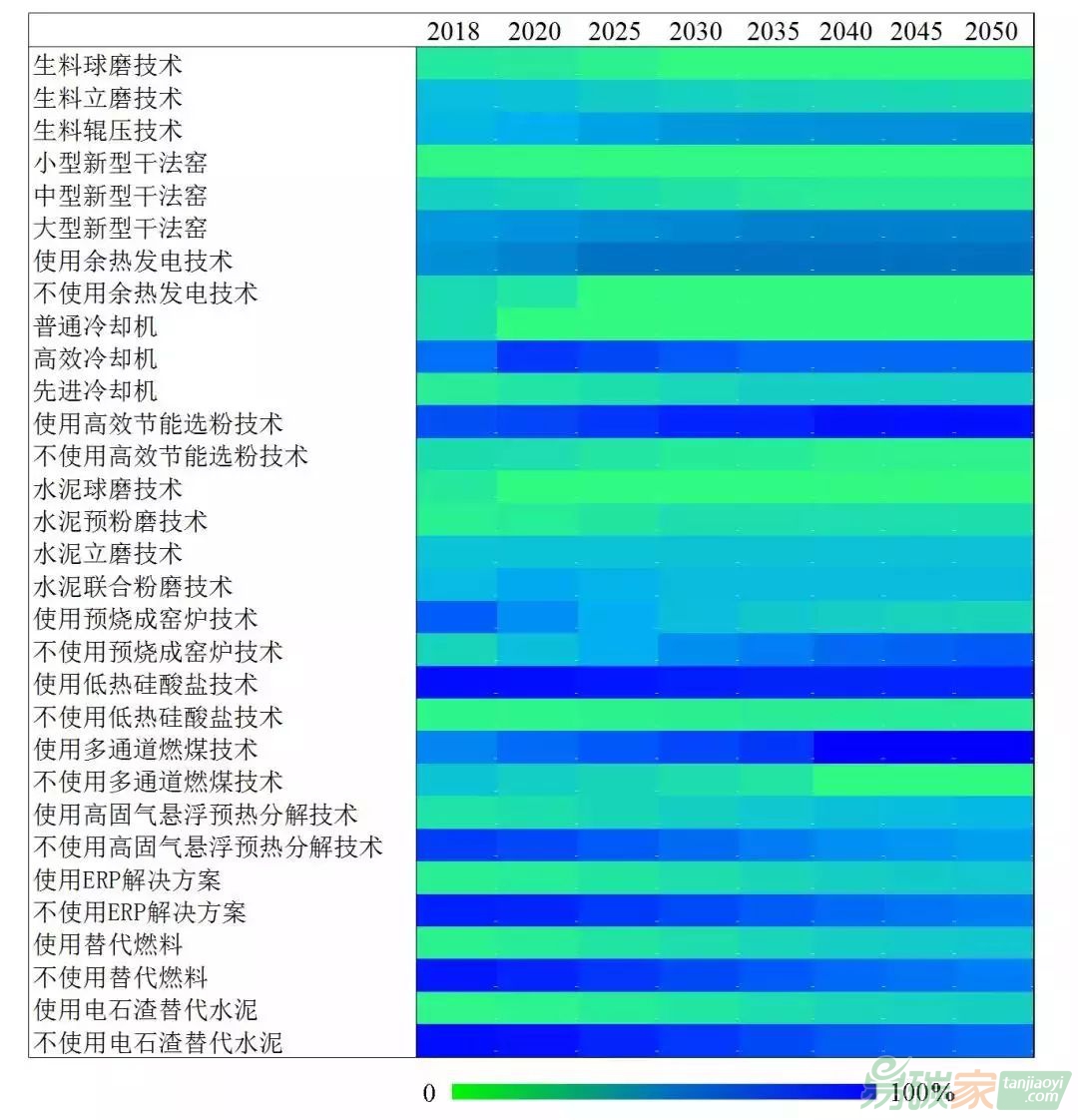 圖9 中等需求情景下水泥綠色轉(zhuǎn)型發(fā)展路徑(2018~2050年)
