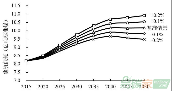 圖12 中國歷史建筑能耗及未來增長情況(2010~2050年)