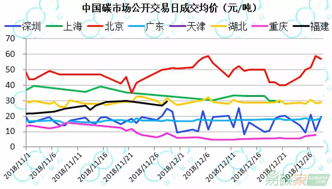 北京成交均價(jià)最高,達(dá)50.08元/噸;與11月相比,深圳和北京市場(chǎng)的配額價(jià)格波動(dòng)較為明顯,分別在8-24元/噸和40-59元/噸區(qū)間內(nèi)浮動(dòng);廣東和湖北市場(chǎng)的配額價(jià)格繼續(xù)保持穩(wěn)定,廣東配額價(jià)格在17 元/噸左右,湖北配額價(jià)格在29元/噸左右;上海和重慶市場(chǎng)的配額價(jià)格略有降低,上海配額價(jià)格在31元/噸左右,重慶配額價(jià)格在6元/噸左右;