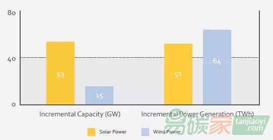2017年光伏和風(fēng)電新增裝機(jī)容量和發(fā)電量增量