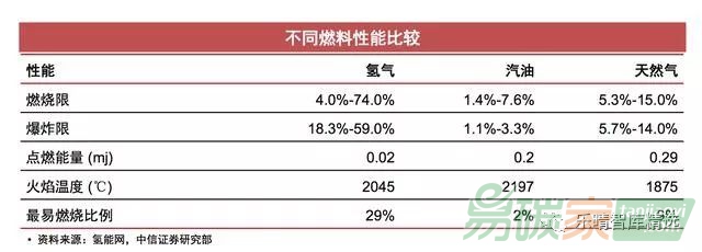 燃料電池:性能優(yōu)異,內(nèi)燃機(jī)的“替代者燃料安全性:氫氣>天然氣、石油氫氣無(wú)毒無(wú)害,反應(yīng)物為水,綠色清潔熱值:氫氣≈3倍汽油≈100倍鋰電池密度小,高壓氫氣泄露燃燒時(shí)形成向上火炬,不向周?chē)鷶U(kuò)散氫氣燃燒限范圍廣,爆炸限較高,在空氣中會(huì)發(fā)生燃燒或爆炸