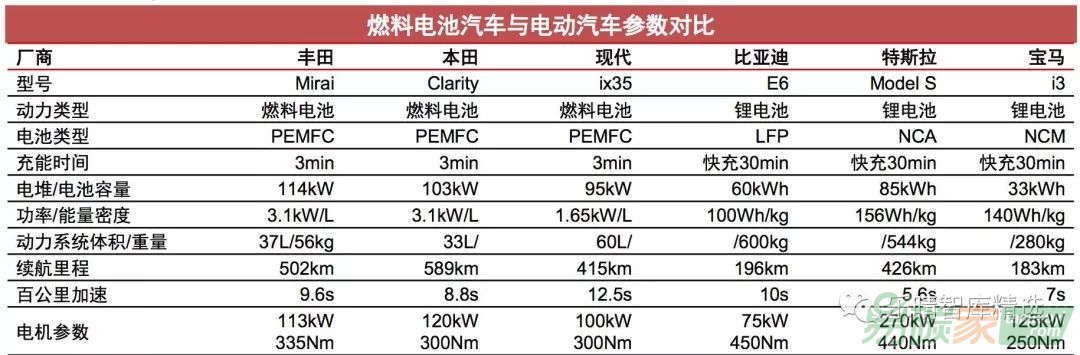 性能媲美內(nèi)燃機(jī):能量轉(zhuǎn)化效率50%-70%、功率密度3.1Kw/L,是內(nèi)燃機(jī)的替代者。性能優(yōu)于鋰電池:能量密度可達(dá)500Wh/kg;只需3-5分鐘便可完成加氫,5kg氫氣行駛500km;循環(huán)壽命4000次以上。