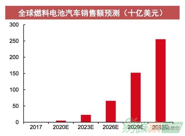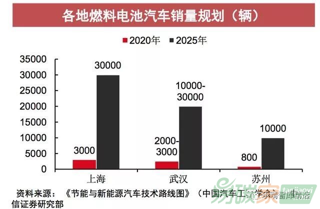 日本富士經(jīng)濟(jì):2025年全球燃料電池市場(chǎng)3281億元。便攜式燃料電池:20億元;固定式燃料電池:1419億元;交通運(yùn)輸設(shè)備燃料電池:1842億元。InformationTrends:燃料電池汽車(chē)將在2020年后進(jìn)入高速增長(zhǎng)期。