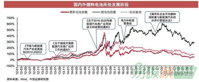 行情主要受政策催化,市場(chǎng)銷(xiāo)量增強(qiáng)上升動(dòng)力。2012-2015.7:補(bǔ)貼政策始出臺(tái),開(kāi)啟三年繁榮期。2015.9-2016.6:補(bǔ)貼退坡引起搶裝,騙補(bǔ)調(diào)查終結(jié)行情,行情經(jīng)歷“過(guò)山車(chē)”。2017.1-2017.4:新政調(diào)整補(bǔ)貼車(chē)型,影響產(chǎn)銷(xiāo),市場(chǎng)持續(xù)下行。2017.6-2017.9:“雙積分”政策超預(yù)期,產(chǎn)銷(xiāo)數(shù)據(jù)推動(dòng),開(kāi)啟反彈行情。2018.2-2018.4:補(bǔ)貼下調(diào)符合預(yù)期,緩沖期產(chǎn)銷(xiāo)大增,隨創(chuàng)業(yè)板“V”型反轉(zhuǎn)。燃料電池汽車(chē):處于政策集中出臺(tái)前期,國(guó)內(nèi)市場(chǎng)有望隨海外銷(xiāo)售逐步放量。
