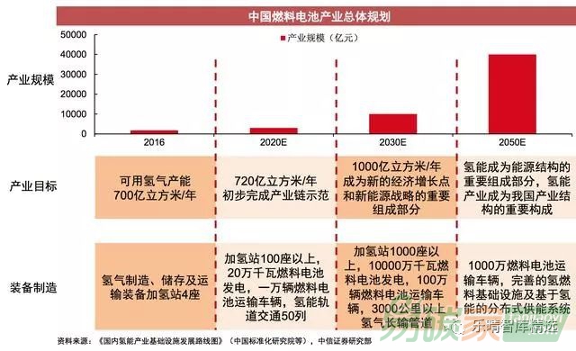 國(guó)內(nèi)燃料電池發(fā)展規(guī)劃預(yù)計(jì)國(guó)內(nèi)氫能產(chǎn)業(yè)市場(chǎng)規(guī)模2030年將達(dá)1萬(wàn)億,2050年將達(dá)4萬(wàn)億。