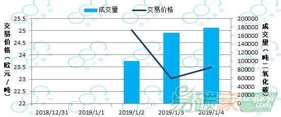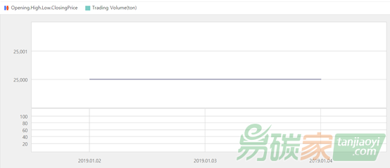 2018年12月31日至2019年01月06日,韓國(guó)碳市場(chǎng)價(jià)格為25000韓元/噸(約22.15美元/噸)。
