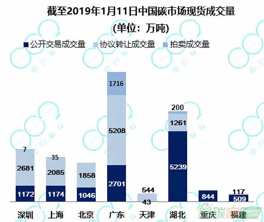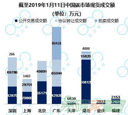 四川分別成交25萬噸和24.2萬噸;深圳市場成交3萬噸,福建成交2100噸。天津和重慶市場無成交。截至2019年1月11日,全國CCER累計成交1.65億噸,其中上海的CCER累計成交量最高,達7464萬噸,占全國成交量的45%;廣東、北京、深圳位列第二梯隊,CCER累計成交量在1500萬噸~3500萬噸之間;湖北、天津、四川、福建位列第三梯隊,CCER累計成交量在200萬噸~650萬噸之間;重慶CCER無成交。