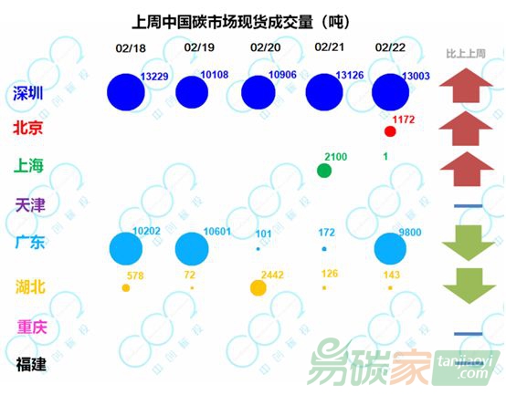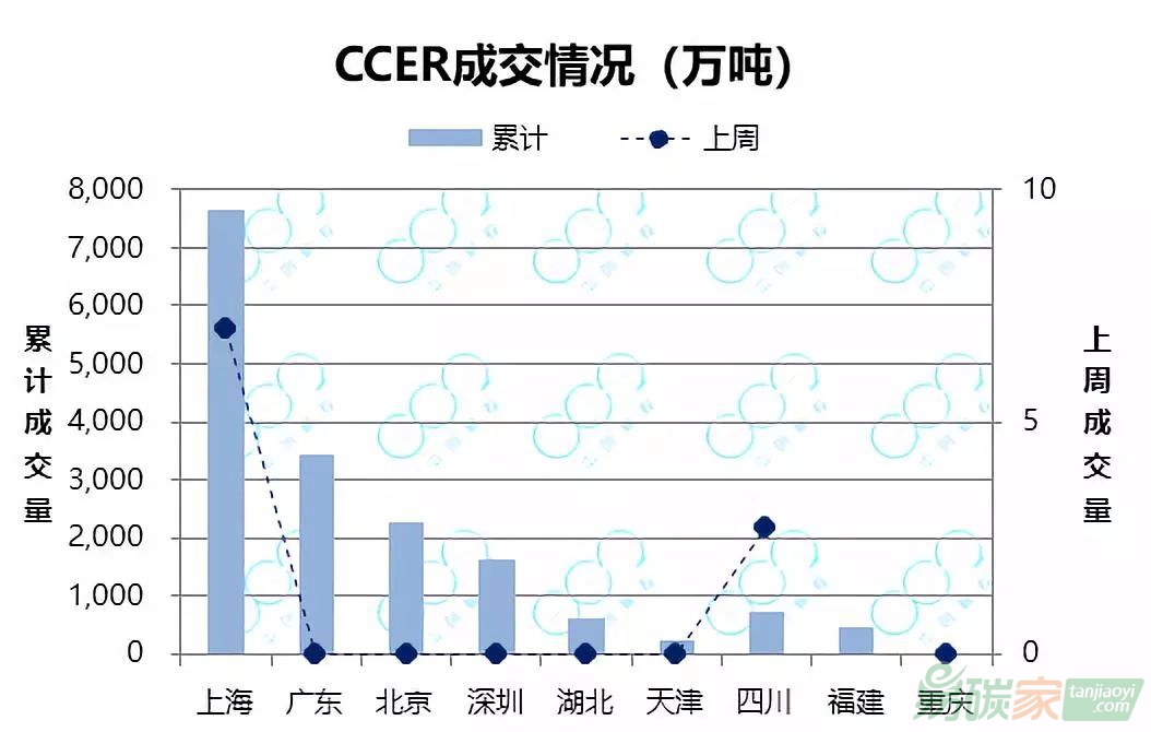 四川市場繼續(xù)保持活躍,累計(jì)成交2.7萬噸;上周廣東、北京、深圳、湖北、天津、重慶CCER市場無成交。
