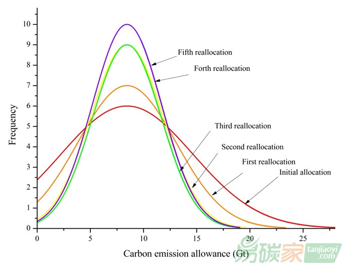 Fig. 6. Frequency distribution of provincial CEA through reallocation.