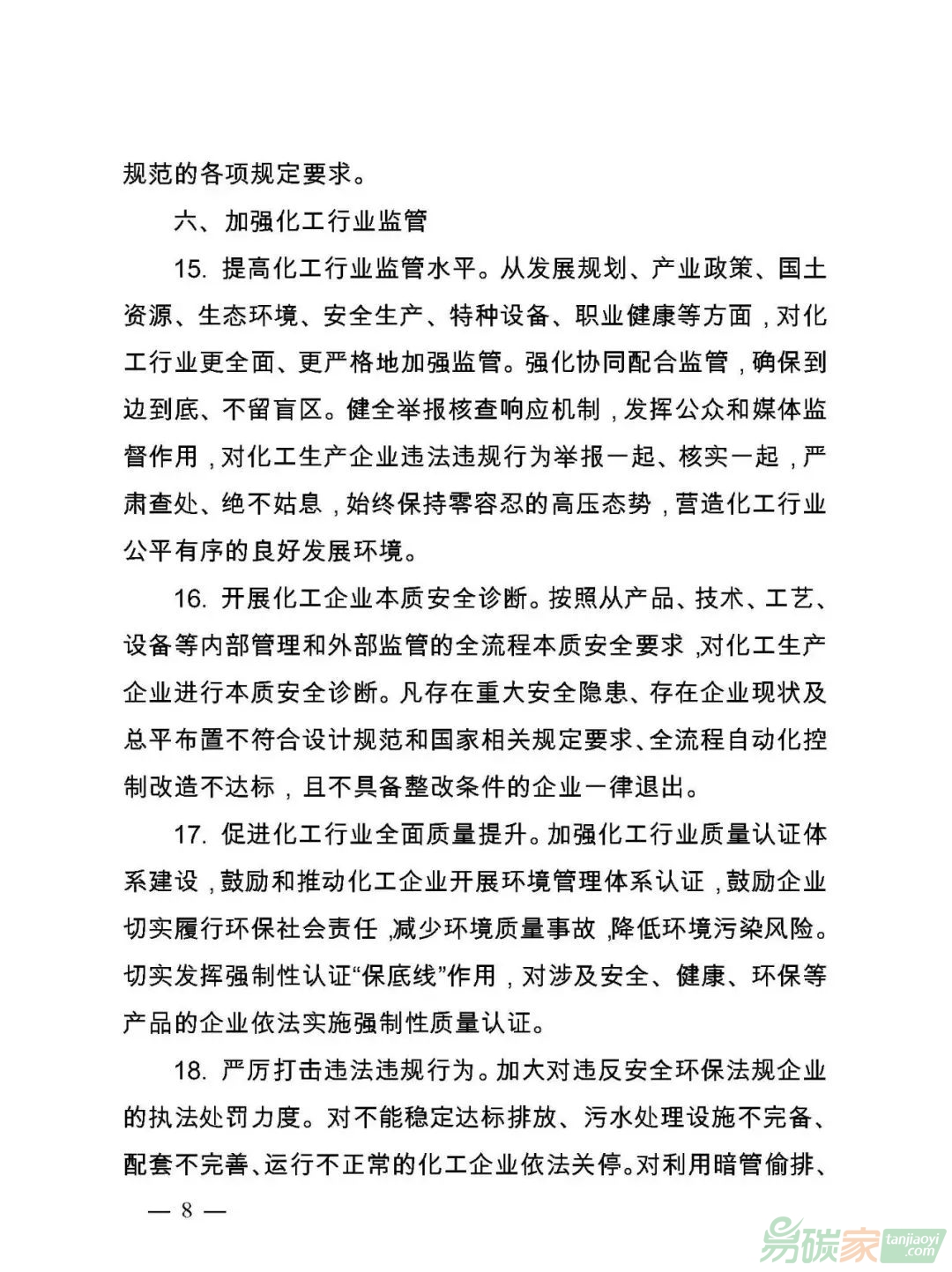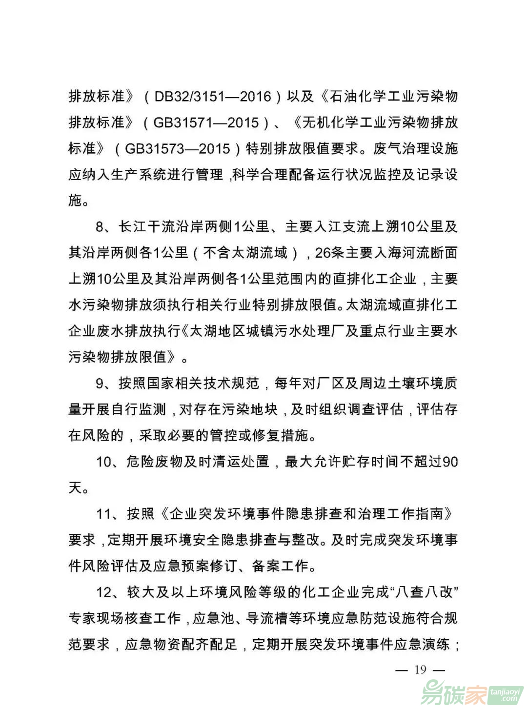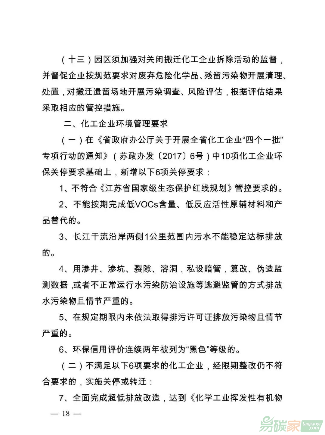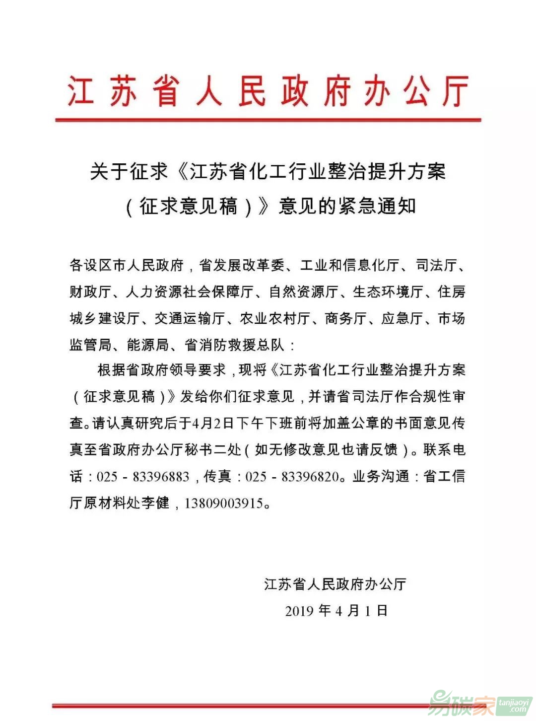 同時,自江蘇省“3.21”響水化工廠爆炸事故發(fā)生之后,江蘇省人民政府辦公廳發(fā)布了關(guān)于征求《江蘇省化工行業(yè)整治提升方案(征求意見稿)》(以下簡稱“方案”)意見的緊急通知。對未來五年之內(nèi),江蘇省化工企業(yè)、化工園區(qū)的改造升級及退出做出了明確指示。