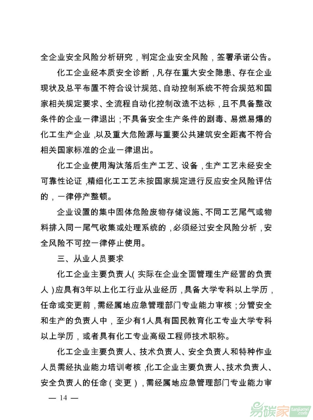 - 被取消化工園區(qū)定位的區(qū)域,嚴禁再新建化工項目,要嚴格管理、堅決關(guān)閉高燃、易燃易爆、安全環(huán)保不達標的化工企業(yè),逐步關(guān)閉或搬遷其它化工企業(yè)。