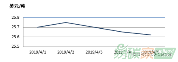 新西蘭碳市場(chǎng)2019年04月01日至2019年04月07日,新西蘭碳市場(chǎng)價(jià)格在25.62-25.75美元/噸之間波動(dòng)。