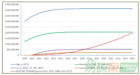 高供給量情景假設(shè)從2013年起產(chǎn)生的所有CER都是符合要求的,且沒有任何項(xiàng)目類型的限制。一些國(guó)際民航組織成員國(guó)傾向于減排量的年份盡可能的早,如京都議定書承諾期開始或京都時(shí)代結(jié)束,而2013年為京都時(shí)代結(jié)束后的第一年。Refinitiv認(rèn)定這種情景發(fā)生的概率很低,因?yàn)檫@意味著CORSIA會(huì)因充斥大量環(huán)境損害性項(xiàng)目的CER而供大于求,最終CORSIA計(jì)劃的效果將受到質(zhì)疑。