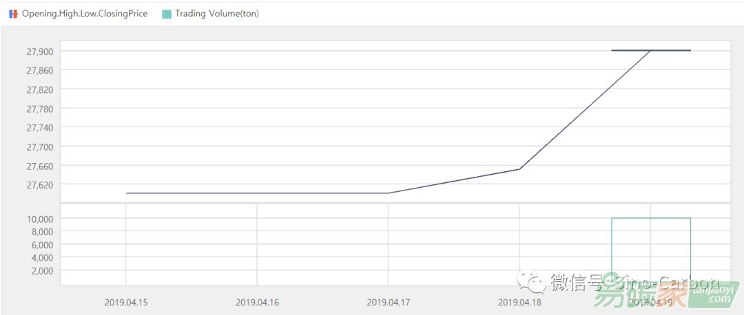 韓國(guó)碳市場(chǎng)2019年04月15日至2019年04月21日,韓國(guó)碳市場(chǎng)價(jià)格在27600-27900韓元/噸間波動(dòng)(約24.26-24.52美元/噸)。