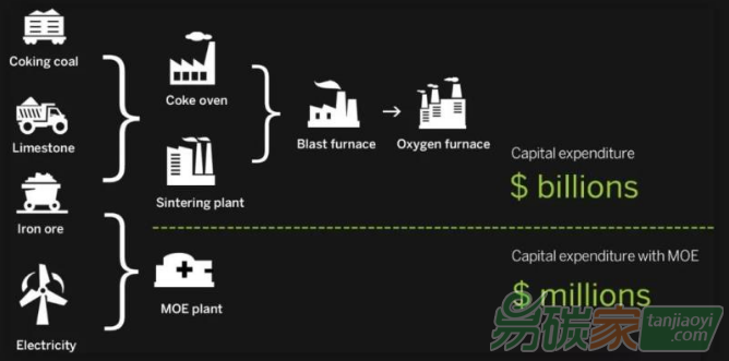 ▲傳統(tǒng)煉鋼過程和MOE技術(shù)成本對(duì)比
