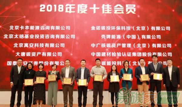 本次會員大會還對2018年度優(yōu)秀會員單位進(jìn)行了表彰。北京卡本能源咨詢有限公司、北京太銘基業(yè)投資咨詢有限公司、北京寓安科技有限公司、大唐碳資產(chǎn)有限公司、國泰君安證券股份有限公司、金諾碳投環(huán)保科技(北京)有限公司、殼牌能源(中國)有限公司、中廣核