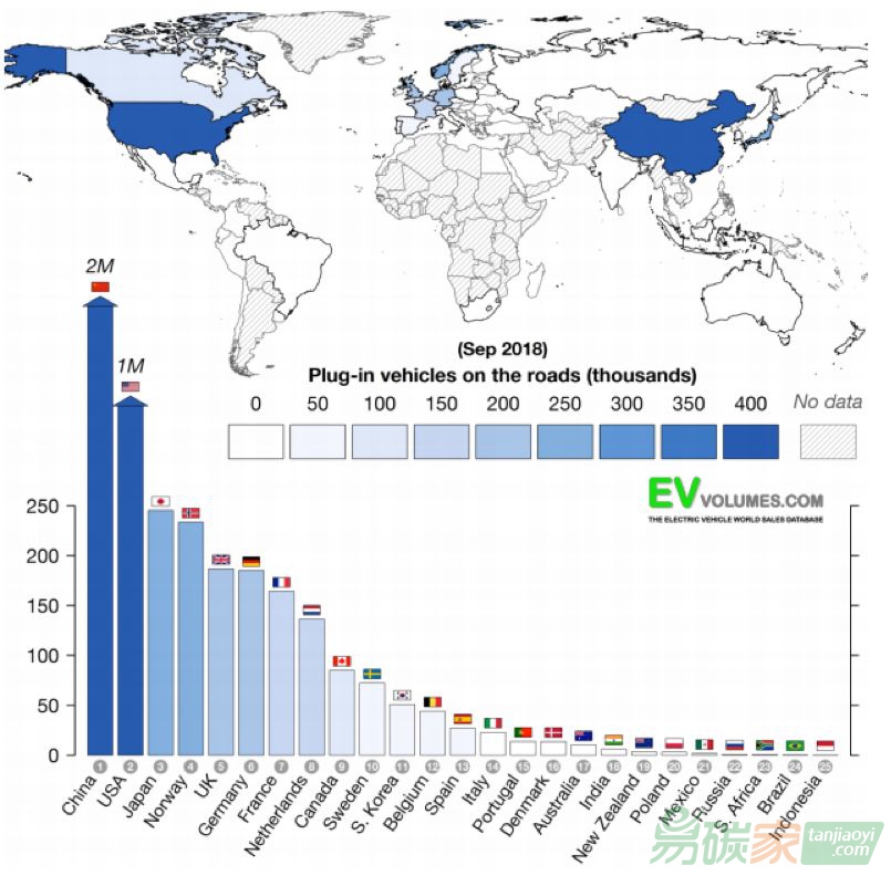 總體來(lái)看,中國(guó)以超過(guò)200萬(wàn)輛電動(dòng)車和150000個(gè)充電樁成為了領(lǐng)軍者。 美國(guó)以100萬(wàn)輛電動(dòng)車位居第2,這意味著僅中國(guó)和美國(guó)就占據(jù)了全球電動(dòng)車市場(chǎng)近四分之三的份額。
