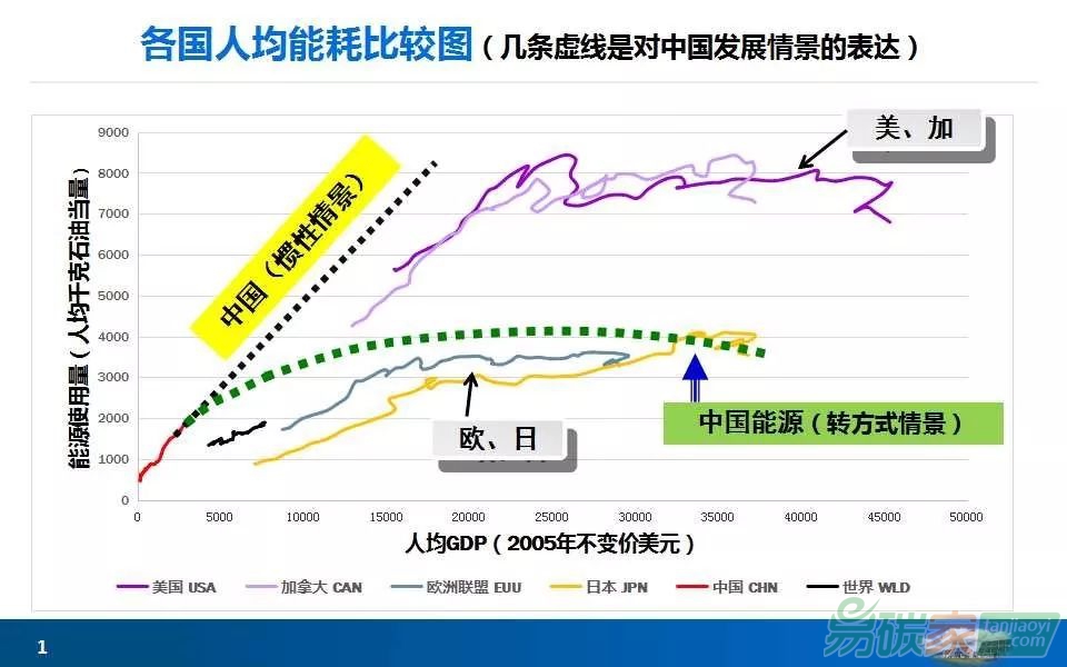 圖 1 世界各國經(jīng)濟(jì)發(fā)展與人均能耗比較圖