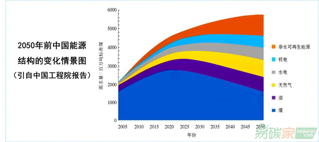 圖 2 2050年前中國能源結(jié)構(gòu)的變化情景示意圖