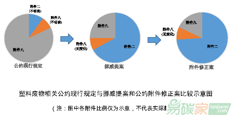 公約現(xiàn)有規(guī)定、挪威提案和公約附件修正案對塑料廢物的管控范圍示意圖如下圖所示。