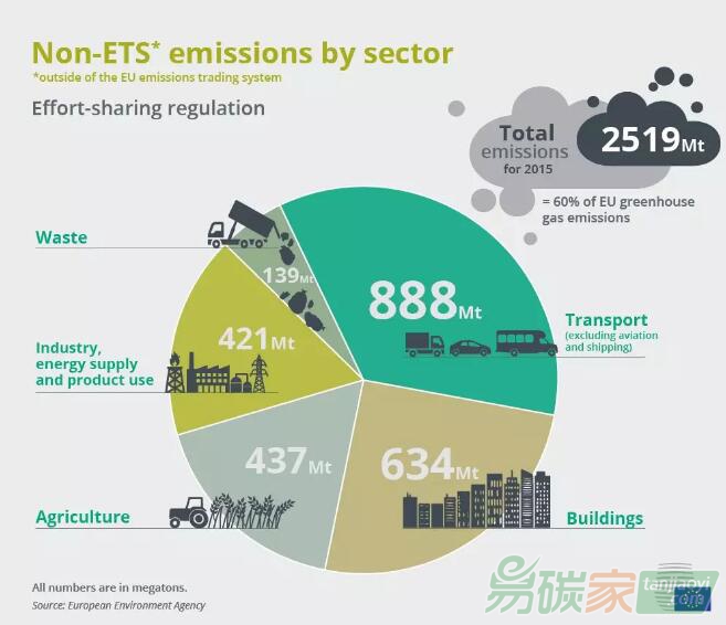 碳排放交易體系”(ETS)和“非ETS”部門。2015年非ETS部門排放高達25.19億噸(約占歐洲碳排放的60%),其中