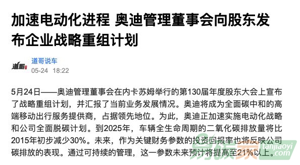 另一個是奧迪召開董事會,提出的目標也很玄學:要成為以消費者為中心的碳中和高端出行服務(wù)商。這個復雜的句子翻譯成人話也很簡單:我們要學習特斯拉。
