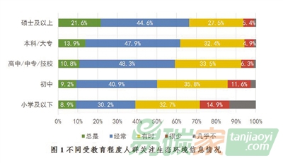 圖1 不同受教育程度人群關(guān)注生態(tài)環(huán)境信息情況