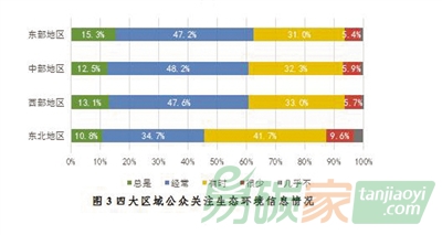圖3 四大區(qū)域公眾關(guān)注生態(tài)環(huán)境信息情況