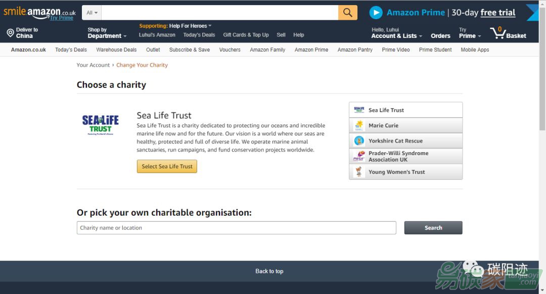 另外一個(gè)案例,亞馬遜推出了一個(gè)網(wǎng)站叫smile.amazon.com, 在這個(gè)網(wǎng)站上購(gòu)物與亞馬遜主網(wǎng)站上沒(méi)什么差別,而smile網(wǎng)站突出了一點(diǎn):用戶在進(jìn)入該網(wǎng)站后,需要選擇一個(gè)公益項(xiàng)目,如海洋保護(hù)、植樹造林等,亞馬遜承諾用戶在smile網(wǎng)站上每消費(fèi)一次,亞馬遜將為公益項(xiàng)目做一次捐贈(zèng)(捐款金額為用戶消費(fèi)金額的千分之五)。消費(fèi)者可以通過(guò)自己的選擇,非常簡(jiǎn)單的做社會(huì)公益。