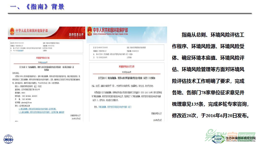 我們這個指南發(fā)布之后,也引起了很多關(guān)注,國際上很多研討會包括ISO標準都引用了我們的指南。現(xiàn)在指南看起來更加定性,定量內(nèi)容很少,原則性、程序性的東西較多。為什么?當時最早初稿的時候,定量東西不少,當時很多研究單位,還有政府管理部門,還有企業(yè)給我們反饋,覺得這個定量太多了,不利于指南完善,不利于將來進一步管理,后面刪減不少,需要后續(xù)基礎(chǔ)研究和實踐案例推動。02