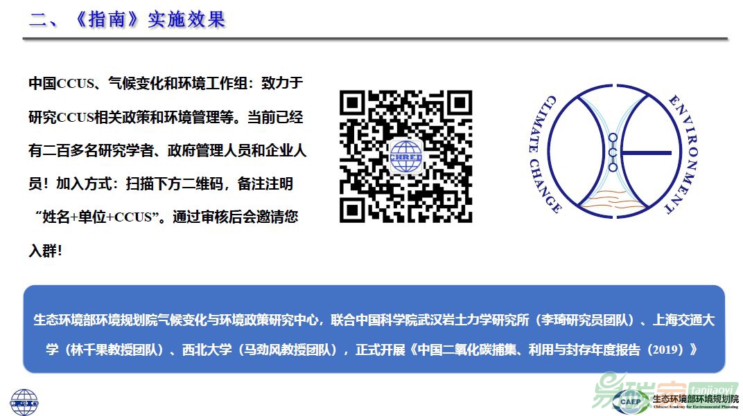 CCUS培訓(xùn)班的第九堂課,生態(tài)環(huán)境部環(huán)境規(guī)劃院 蔡博峰老師介紹《二氧化碳捕集、利用與封存環(huán)境風(fēng)險評估技術(shù)指南(試行)》解讀。