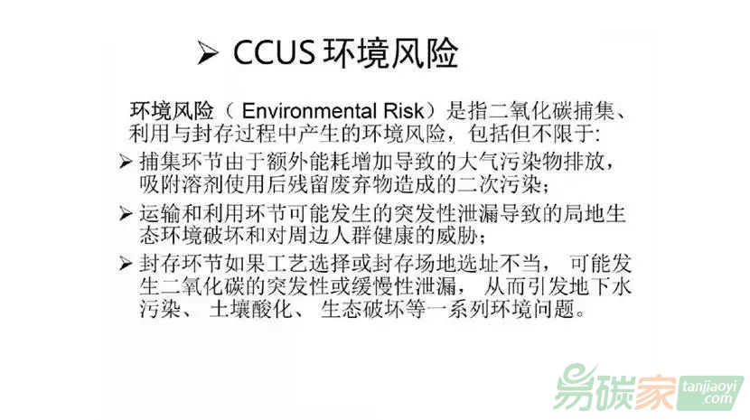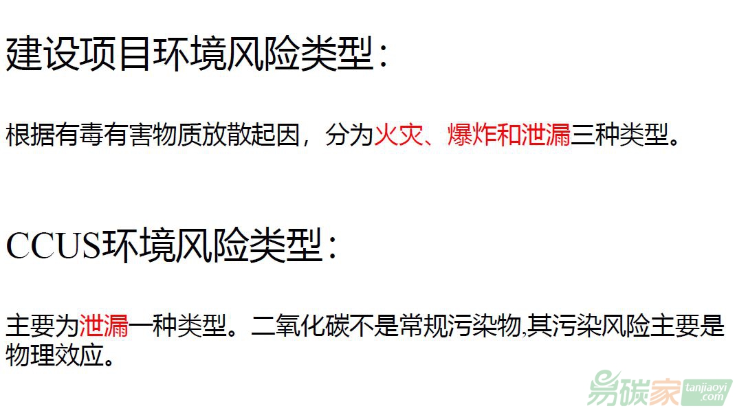 CCUS的環(huán)境風(fēng)險(xiǎn),國外的環(huán)境風(fēng)險(xiǎn)手冊和教科書上講得比較多,但和我國說的不太一樣,他們說的環(huán)境風(fēng)險(xiǎn),實(shí)際上是指的潛在環(huán)境影響。而我國主要是指突發(fā)環(huán)境事故的風(fēng)險(xiǎn)。所以我國在進(jìn)行風(fēng)險(xiǎn)源、風(fēng)險(xiǎn)途徑、風(fēng)險(xiǎn)暴露、風(fēng)險(xiǎn)后果、風(fēng)險(xiǎn)效應(yīng)描述時,它是完整的一套理論,這和國外的理論框架是不一樣的。