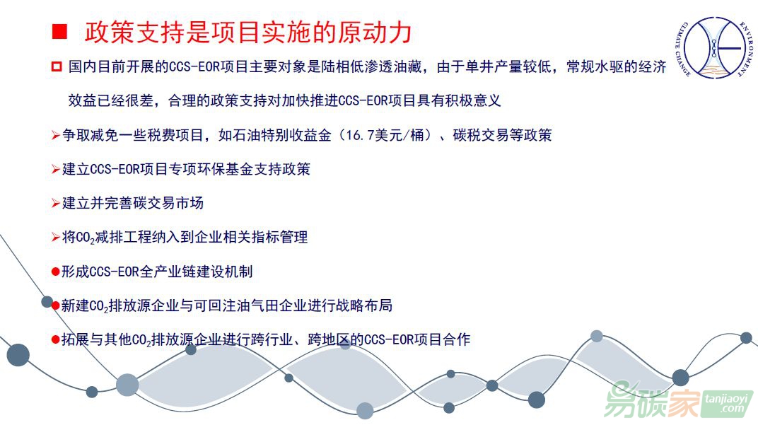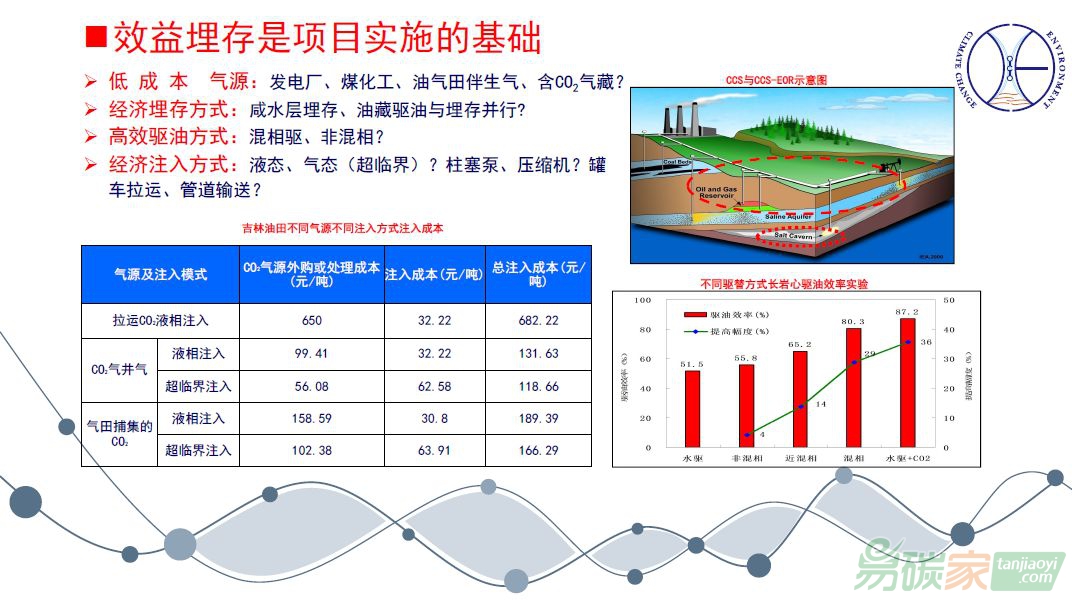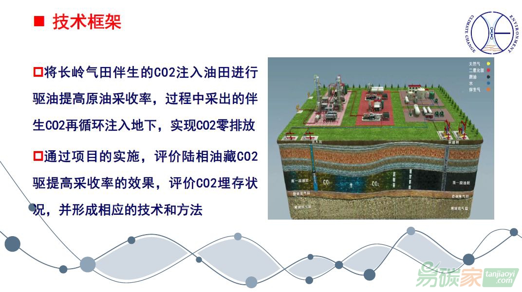 問題。我們有得天獨厚的優(yōu)勢,同一個區(qū)域不同的深度分布著氣藏和油藏,氣藏和油藏上下疊置,正好油藏也處于水驅(qū)的中后期,需要三次采油技術(shù)來提高采收率。二氧化碳驅(qū)油技術(shù)在全世界是公認的提高采收率的三次采油技術(shù)之一。這樣我們把CCS-EOR項目開展起來了。
