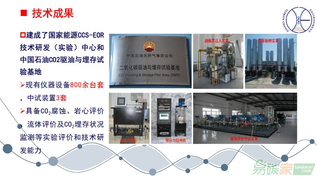 技術(shù)成果這一塊,現(xiàn)在我們有這方面的軟硬件能力,我們現(xiàn)在是國家能源局下面的CCS-DOR技術(shù)研發(fā)中心的一部分,也是中石油二氧化碳驅(qū)油與埋存的試驗基地,有設(shè)備儀器800余套,中試裝置三套??梢跃邆涠趸几g、巖心評價、流體評價,以及埋存狀況監(jiān)測評價的技術(shù)能力和研發(fā)能力。02