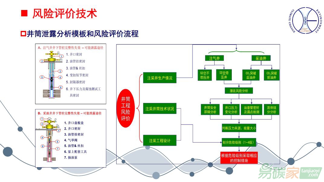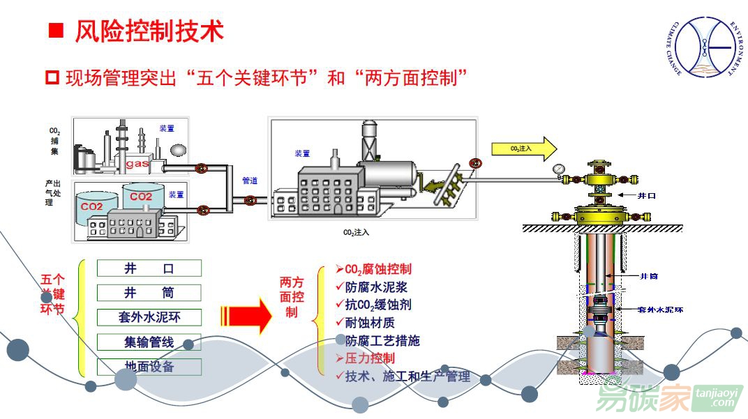 水泥環(huán)、地面設(shè)備、集輸管線等五個單元,通過腐蝕控制、壓力控制,最終實現(xiàn)注采的安全。腐蝕控制方面主要考慮井筒,選擇防二氧化碳的水泥井,保護套管,選擇抗二氧化碳緩蝕劑,加入井筒套管,實現(xiàn)安全性。