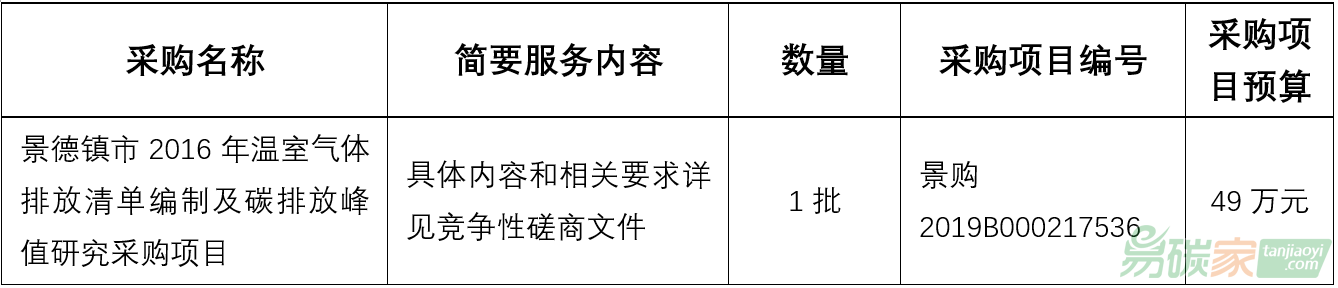 項(xiàng)目名稱:江西省景德鎮(zhèn)市生態(tài)環(huán)境局景德鎮(zhèn)市2016年溫室氣體排放清單編制及碳排放峰值研究服務(wù)采購項(xiàng)目
