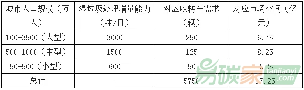 各城市餐廚垃圾收收轉(zhuǎn)車的需求及規(guī)模預測