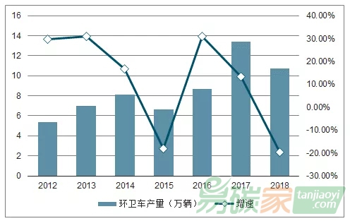 2012-2018年中國環(huán)衛(wèi)車產(chǎn)量及增速