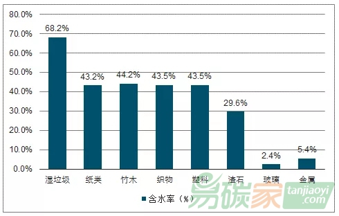 深圳市環(huán)科院和同濟大學共同的研究,我國食品廢物(即一般條件下的濕垃圾)本身含水率高,且在生活垃圾中的占比過半,從而提高生活垃圾整體的含水率。通過垃圾分類將濕垃圾分離,可以非常有效的降低生活垃圾整體含水率(40%左右)。